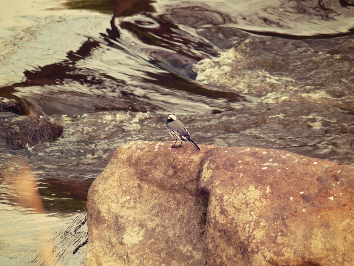 Bird on a stone. This photo was taken on the Sázava River in April 2025.