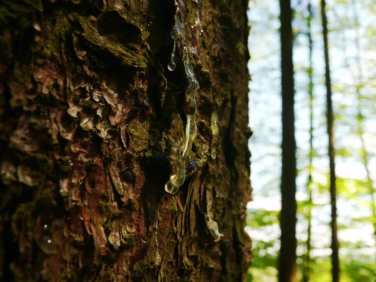 Crying tree. Photographed in a forest in the Vysočina region of the Czech Republic in April 2025.