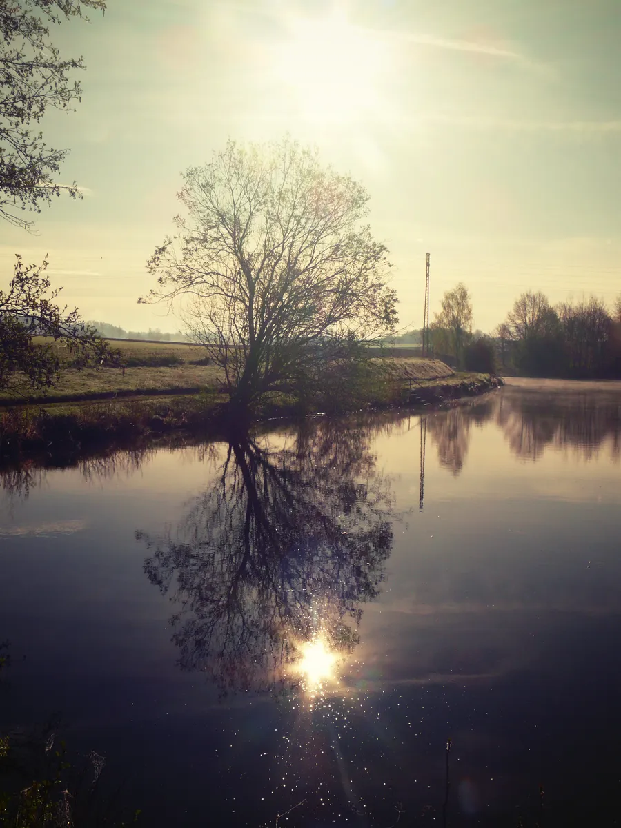 Lake and sun. Taken early in the morning in the park in Světlá nad Sázavou in April 2025.