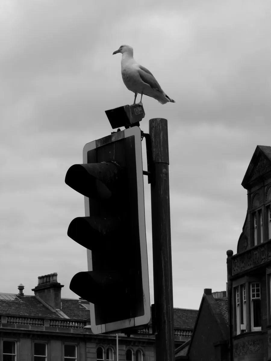 Seagull at the traffic light